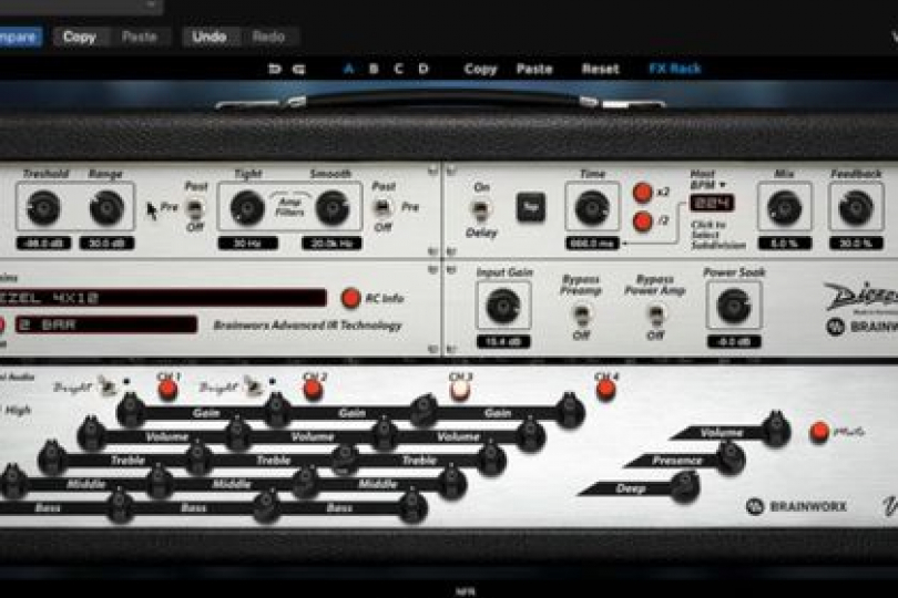 Čtyřkanálový celolampový zesilovač Diezel VH4 představuje luxusní a velmi oblíbený high gainový aparát, který od roku 1994 pomáhal definovat zvuk moderní rockové kytary. Přesnou emulaci tohoto modelu nyní ve formě pluginu nabízí také firma Brainworx, jejíž software je plně schválen vývojáři originálu Peterem Diezelem a Peterem Stapferem.