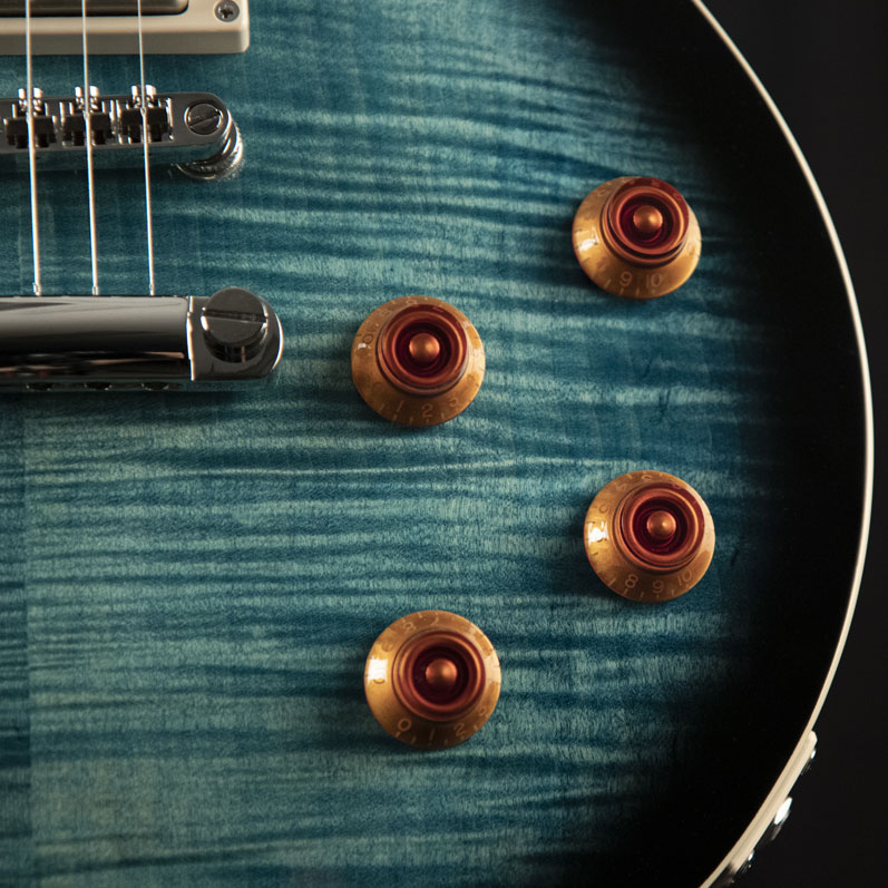 Dalším výrazným specifikem je pak bezesporu barevné provedení nástroje. Nemůžu se rozhodnout, jestli se mi ona černomodrozelená kombinace líbí, nebo mi naopak přijde až trochu kýčovitá, ale uznávám, že své kouzlo má. Osobně sice dávám u Les Paulů přednost tradičním povrchovým úpravám, ale kdo má rád trochu extravagance, přijde si zde na své.
