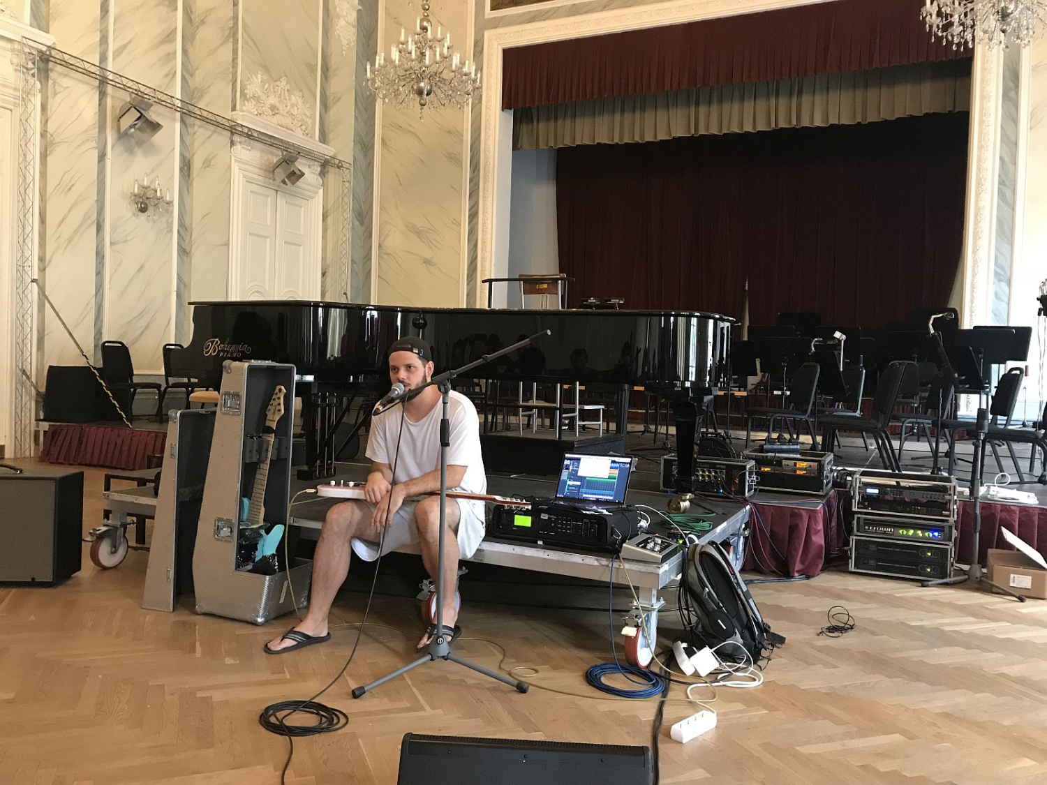 Ve zničujícím horku, v krásném slavnostním prostředí symfonického sálu na kolonádě a zároveň neformální atmosféře, seminář nabral pro kytaristy směr nečekaný. Místo obligátního úvodního hraní se začalo přímo dotazy z publika, které zavedly diskuzi nejprve k výrobě samplů pomocí skřípající židle, nebo využitím zpěvu pětileté neteře, ať už přirozeného nebo masivně zefektovaného.