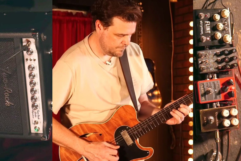 Akustický Collings je zapojen do pedálového předzesilovače Grace Design ALiX, který mu pomáhá vyladit zvuk a při výměně nástrojů také vyrovnat rozdíly ve snímačích s různým výkonem. Pro dozvuk někdy využívá osvědčený tremolo / reverb Strymon Flint. Kromě toho pedalboard obsahuje špičkový zkreslovač Vemuram Jan Ray, overdrive SOV-2 od firmy Free the Tone, granulární looper / delay Chase Bliss Mood a programovatelný delay Line 6 DL4 Mk II.