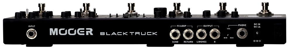 Na čelním panelu je umístěn nástrojový vstup, send/return sériové efektové smyčky, dvojice výstupů, sluchátkový konektor s potenciometrem hlasitosti a zdířka 9V adapteru. Multiefekt Mooer Black Truck by se měl v evropské distribuci objevit pravděpodobně v průběhu září za cenu okolo 250 eur.