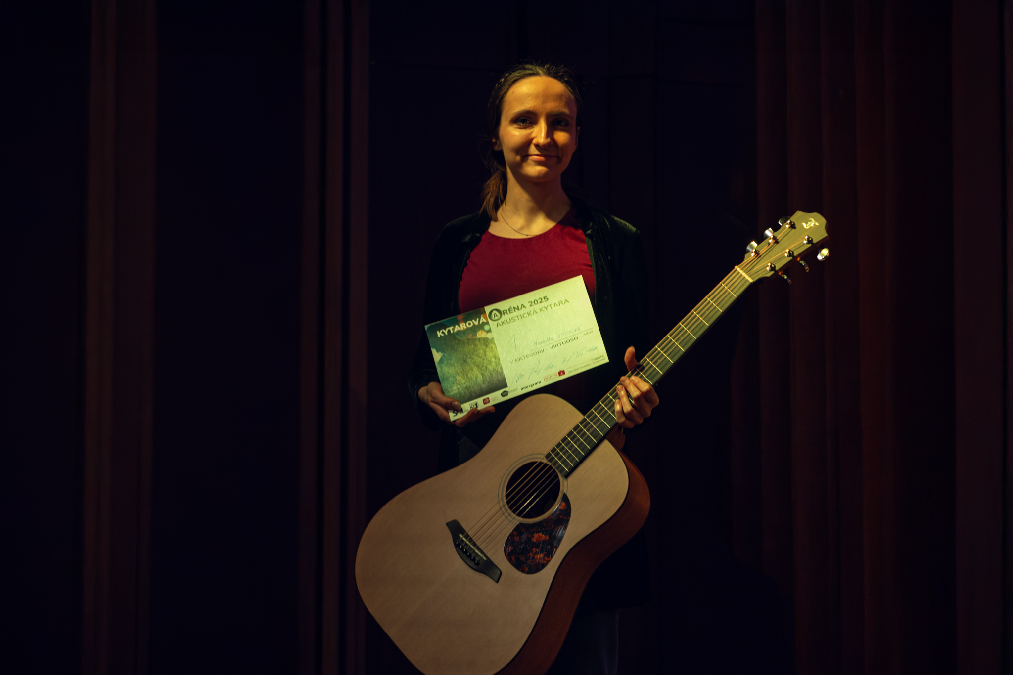 Finále akustického kola Kytarové arény 2025 ukázalo, že mladá česká kytarová scéna má našlápnuto. Ve čtvrtek 20. listopadu v koncertním sále Konzervatoře Pardubice zazářila Markéta Hejdová – hráčka, která suverénně propojuje klasiku, folk i jazz. Její vyzrálý tón a frázování přesvědčily porotu i publikum, a z rukou Svazu autorů a interpretů (SAI) převzala hlavní cenu: kytaru Furch.