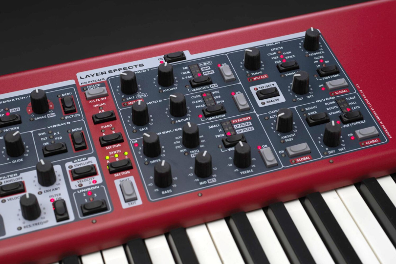 Sekce Synth se třemi nezávislými vrstvami je založena na výkonném synth enginu Nord Wave 2, včetně virtuální analogové syntézy, samplů, FM či Wavetable. Rozsáhlá nová kolekce vzorků z Nord Sample Library nabízí širokou zvukovou paletu smyčců, basů, sborů, kytar a mnoho dalšího. Pokročilý Arpeggiator obsahuje nové režimy Polyphonic, Gate a Pattern a lze jej použít pro obrovské množství rytmických aplikací s přizpůsobitelnými patterny.
