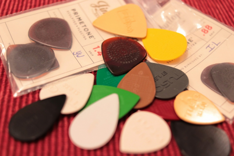 V mezičase jsem vyzkoušel pár dalších produktů jako např. TUSQ Picks – „první trsátko na světě se zabudovaným generátorem vyšších harmonických“. Nabízené ve 3 x 3 modifikacích zvukových i tvarových. Musím přiznat, že když vám spadne na stůl, tak podle jeho rezonance je jasné, že to není obyčejný kus plastu. Nicméně mně se do vkusu příliš netrefilo tvarově (dlouhá špička, malé nebo velké), verze Bright mi projevem připomněla spíš hodně tvrdá trsátka kovová nebo kamenná (jejichž nejsem příliš velký příznivce) a Warm i Deep mi od běžně dostupných kousků nepřišly nijak zvlášť odlišné.