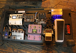 Srdcem pedalboardu je programovatelný looper/kontroler Carl Martin Octa-Switch MKIII a signál z kytary jde nejprve do kvákadla Dunlop Cry Baby, odtud do volume pedálu Dunlop DVP1XL, ladičky TC Electronic PolyTune Mini, následuje polyfonní pitch shifter EHX Pitch Fork, overdrive Way Huge Saucy Box, zkreslení Mesa Boogie Flux Drive, Boss NS-2 Noise Supressor, reverb MXR, synth EHX Super Ego, delay Eventide Time Factor a looper TC Electronic Ditto X2. Pro úpravu vokálu je použit multiefekt Helicon VoiceLive od TC Electronic.
