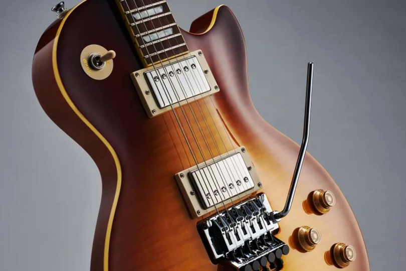 Na menší a především slušivější hlavici najdeme firemní strojky Deluxe s plastovými rondely a černá dvouvrstvá krytka šachty šroubu výztuhy nese Lifesonův podpis. Struny kotví ve dvouzvratném uzamykatelném vibratu Graph Tech Ghost, kombinovaného se zámky nultého pražce typu Floyd Rose R4 o šířce cca 42.8 mm, které jsou k hmatníku přišroubovány z čelní strany.