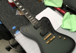 Korpus se zaoblenými hranami a lehce frézovanou hranou spodního rohu tvoří podobně jako u Firebirdu dvě mahagonová křídla lepená k průchozímu krku ze tří kusů stejného materiálu, ebenový hmatník s ozdobnou lemovkou a obdélníkovými značkami poloh nese 22 jumbo pražců a menzura byla vyměřena na 24.75 palce.