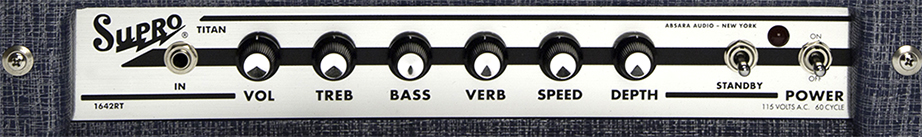 Supro 1642RT Titan má identické ovládání jako předchozí model, kromě přepínače výkonu a lampového usměrňovače. Koncový stupeň o výkonu 50 Wattů je zapojen ve třídě A a opět využívá elektronek 6L6 nebo 5881. Skříň je osazena novým desetipalcovým reproduktorem Supro HP10 kombinujícím vlastnosti repra Supro CR10 s posílenými basy a dynamikou, kterou mu dodává nově koncipovaný magnet a přepracovaná membrána.